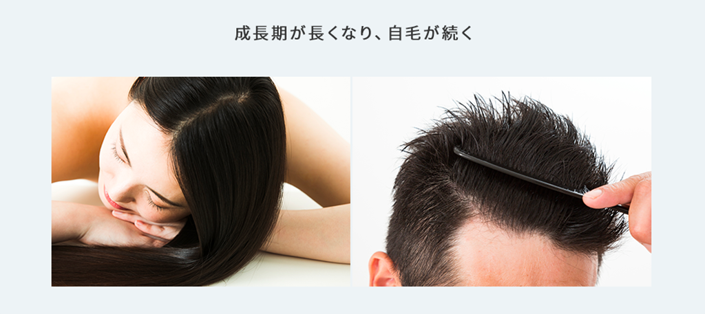 毛乳頭細胞の働きを抑制するサイトカインや炎症性サイトカインを抑制するので、退行期への早期移行を抑制し、休止期を短縮します。
